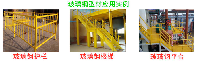 作為型材類產品,一般很少單獨使用。如玻璃鋼方管、圓管、橋架等都是作為配件在工程內使用。比較常見的玻璃鋼型材案例有玻璃鋼護欄玻璃鋼樓梯、玻璃鋼平臺等。