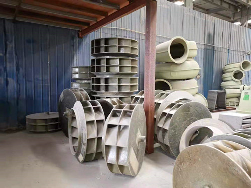 a、常規的葉輪使用的原材料是乙烯基樹脂與玻璃纖維氈,如果對葉輪的防腐性能有特殊的要求可在生產時更換樹脂的種類或者在原材料中加入棉布之類的材料。